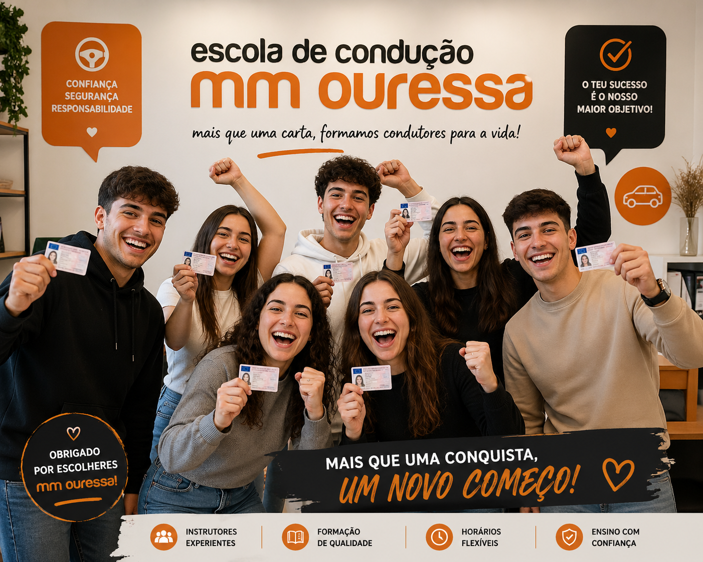 Na MM OURESSA, acreditamos que aprender a conduzir é muito mais do que passar num exame.O nosso compromisso é formar condutores responsáveis, confiantes e preparados para a vida.Com uma equipa experiente, métodos de ensino modernos e um acompanhamento próximo, estamos ao teu lado em cada etapa do caminho.